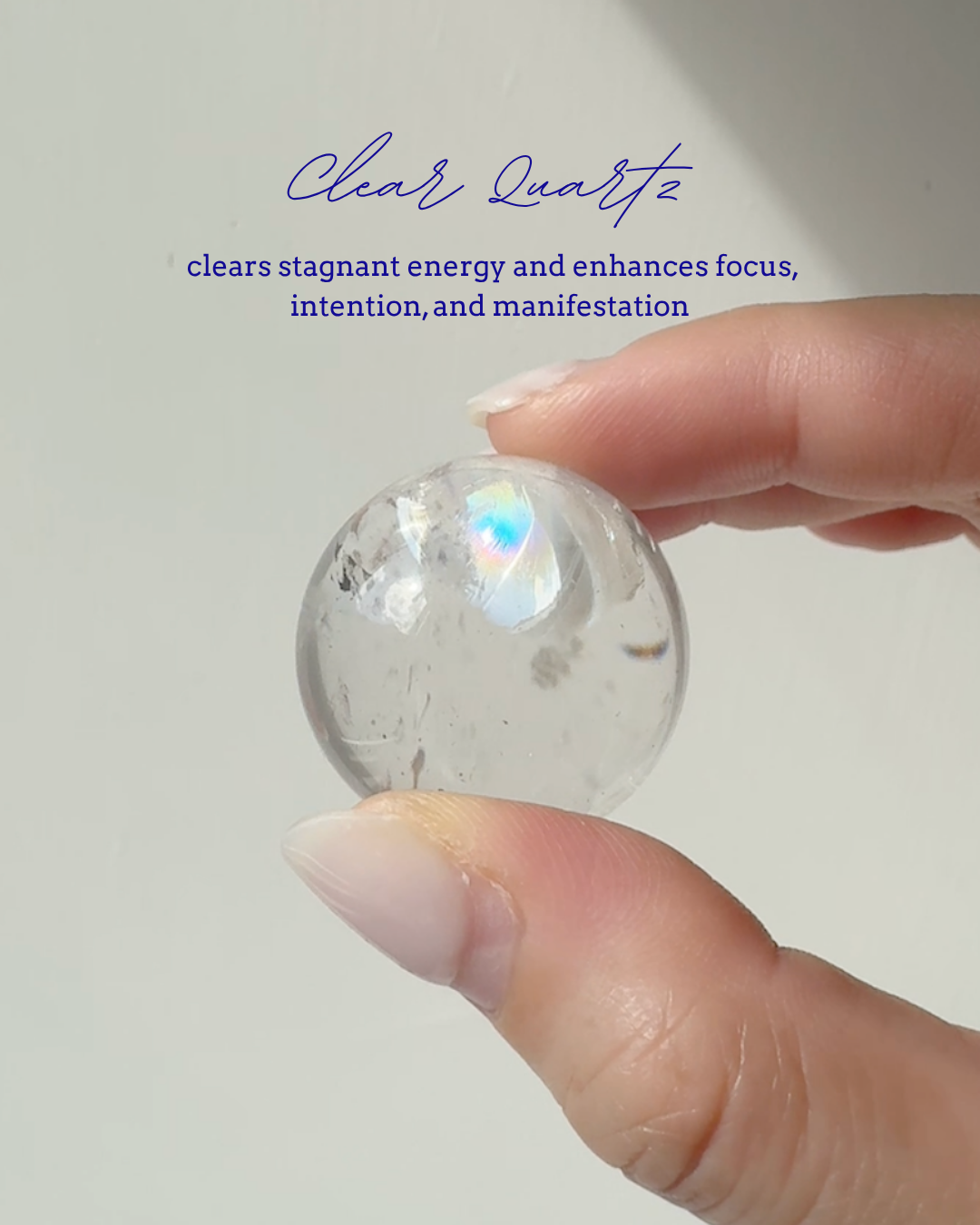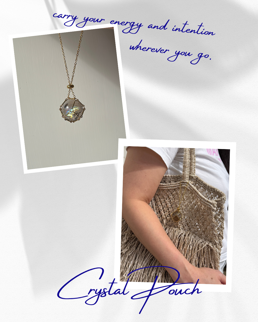 Each crystal pouch comes with a sphere and raw stone — designed to hang on your bag, bringing intention, positivity, and protection wherever you go.