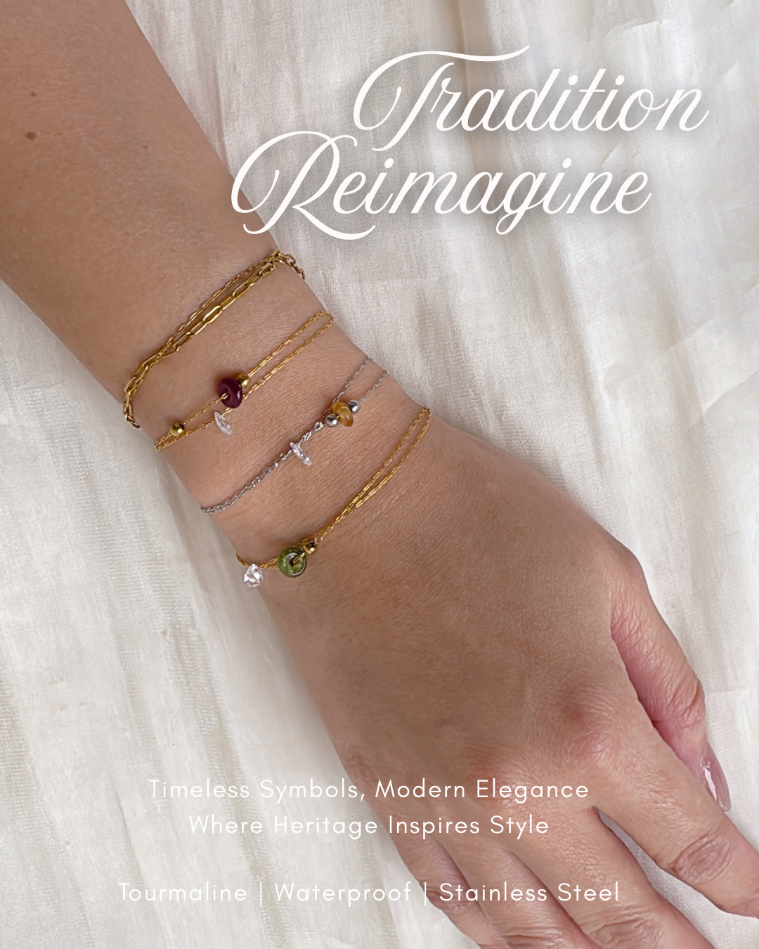 Tourmaline X CZ stone 碧璽併閃爍嘅奧地利石點綴,配上極幼手鏈唔會太誇張,但氣質滿滿。