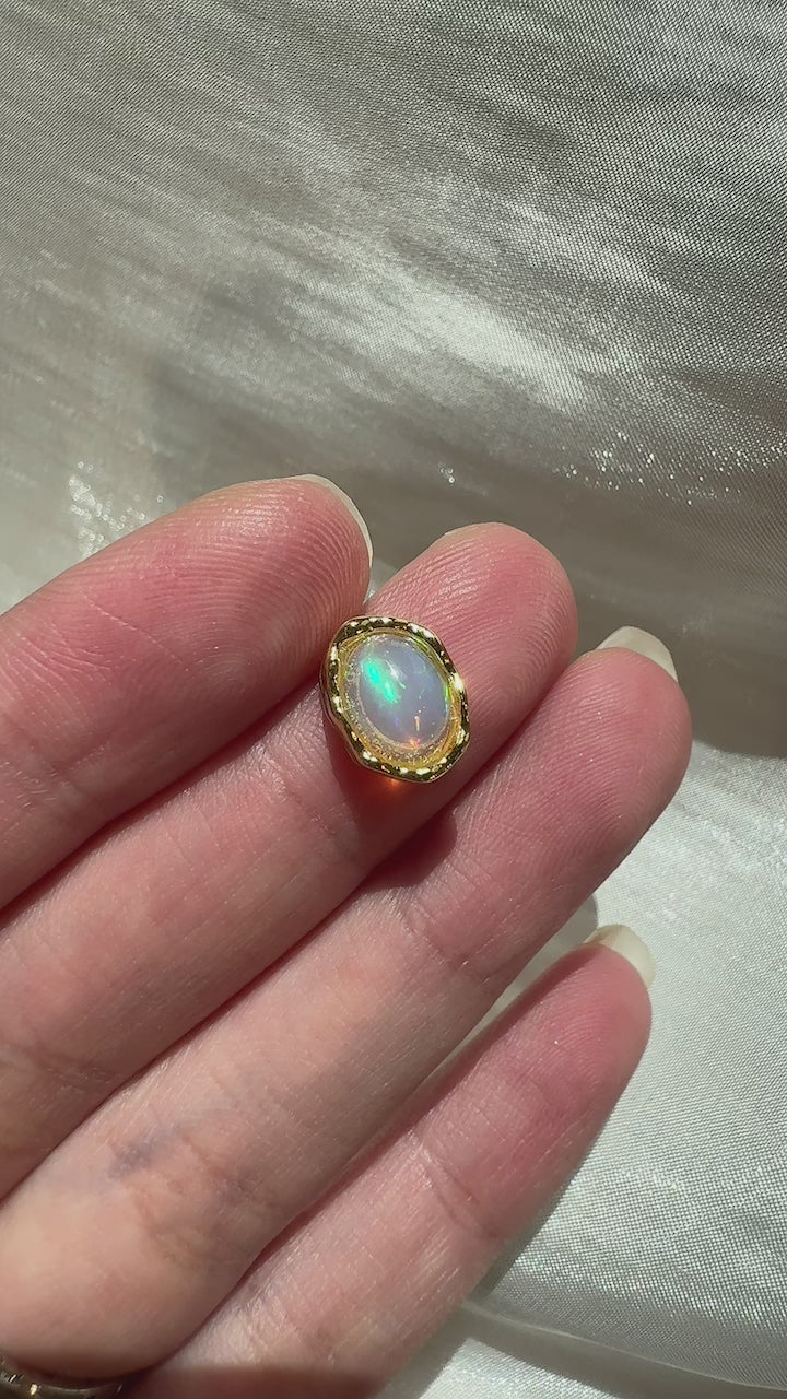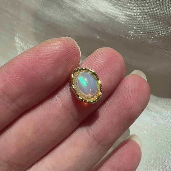 The iridescent color of natural Opal reflection is a stunning display of shimmering hues that seem to change and shift in the light, creating a mesmerizing effect. The colors can range from bright and bold to subtle and delicate, and often include shades of blue, green, pink, yellow, and orange. The play of colors is caused by the diffraction and interference of light as it passes through the microscopic silica spheres that make up the Opal.