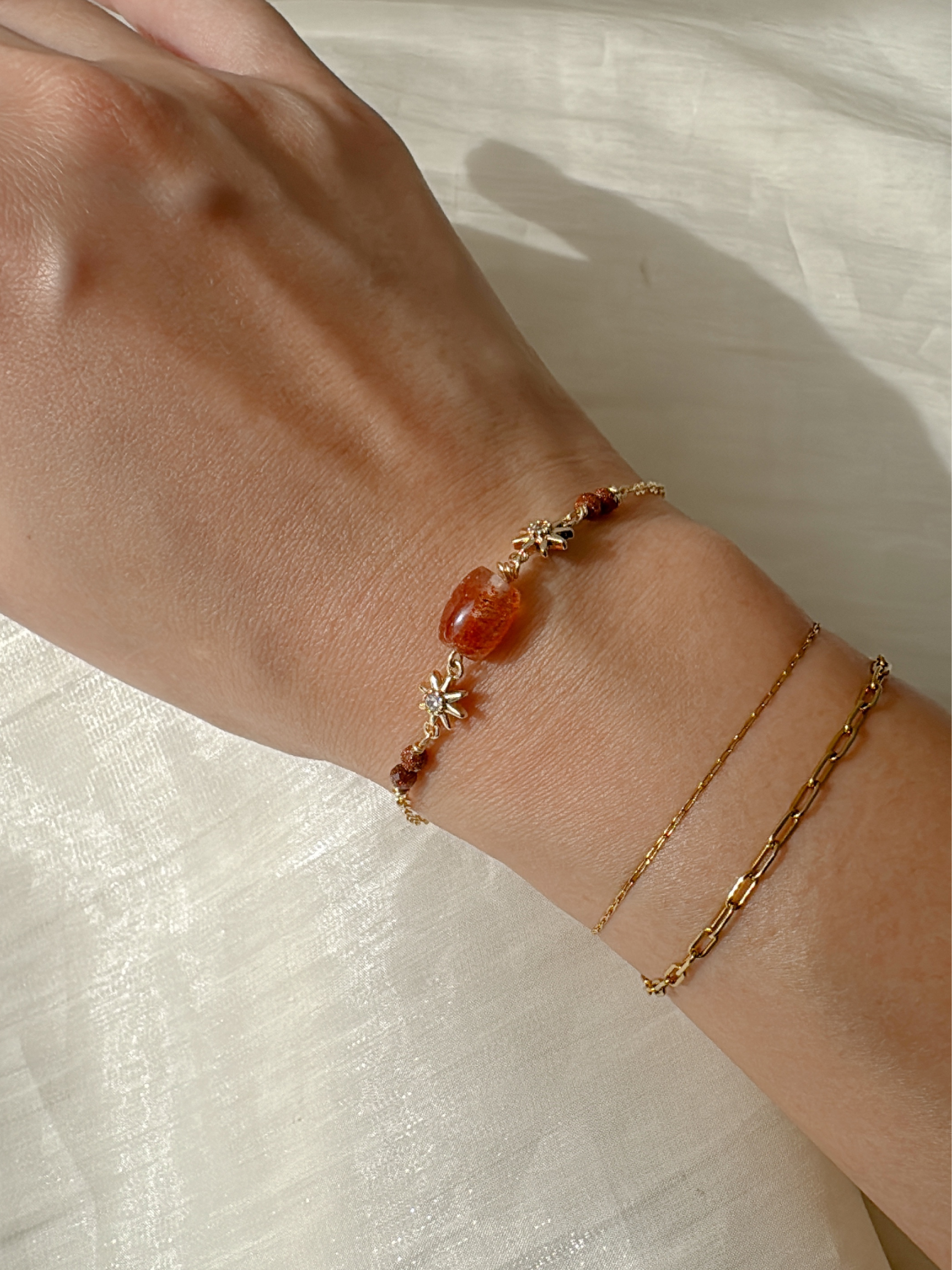 Sunstone radiates the uplifting energy of the sun, bringing warmth, positivity, and empowerment into your life. It is known to boost confidence, motivation, and creativity — helping you step into your true light.
